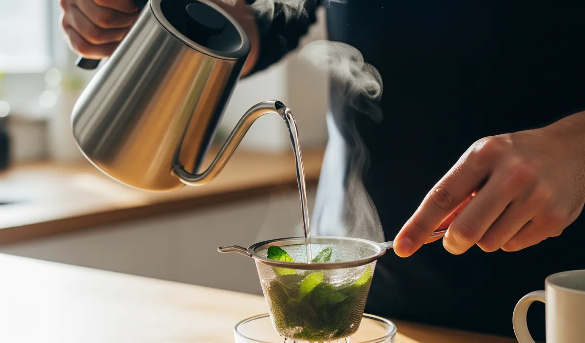 برای شروع، ۸ تا ۱۰ برگ تازه یا یک قاشق چایخوری برگ خشک انتخاب کنید. برگها را بشویید تا گردوغبار احتمالی از بین برود. این مرحله پایهای محکم برای دمآوری بعدی فراهم میکند.